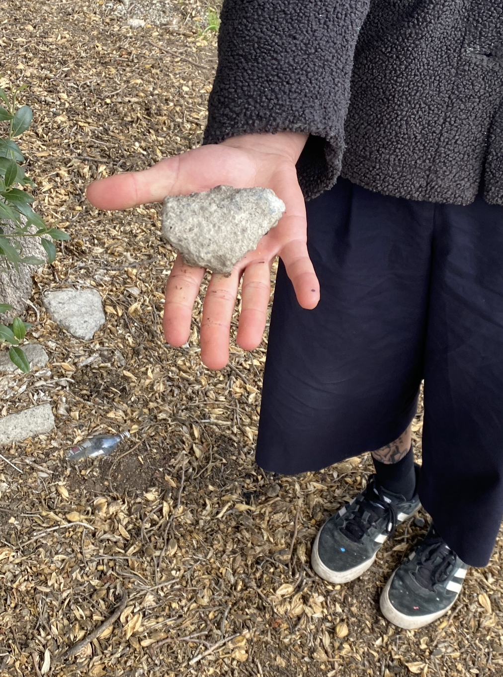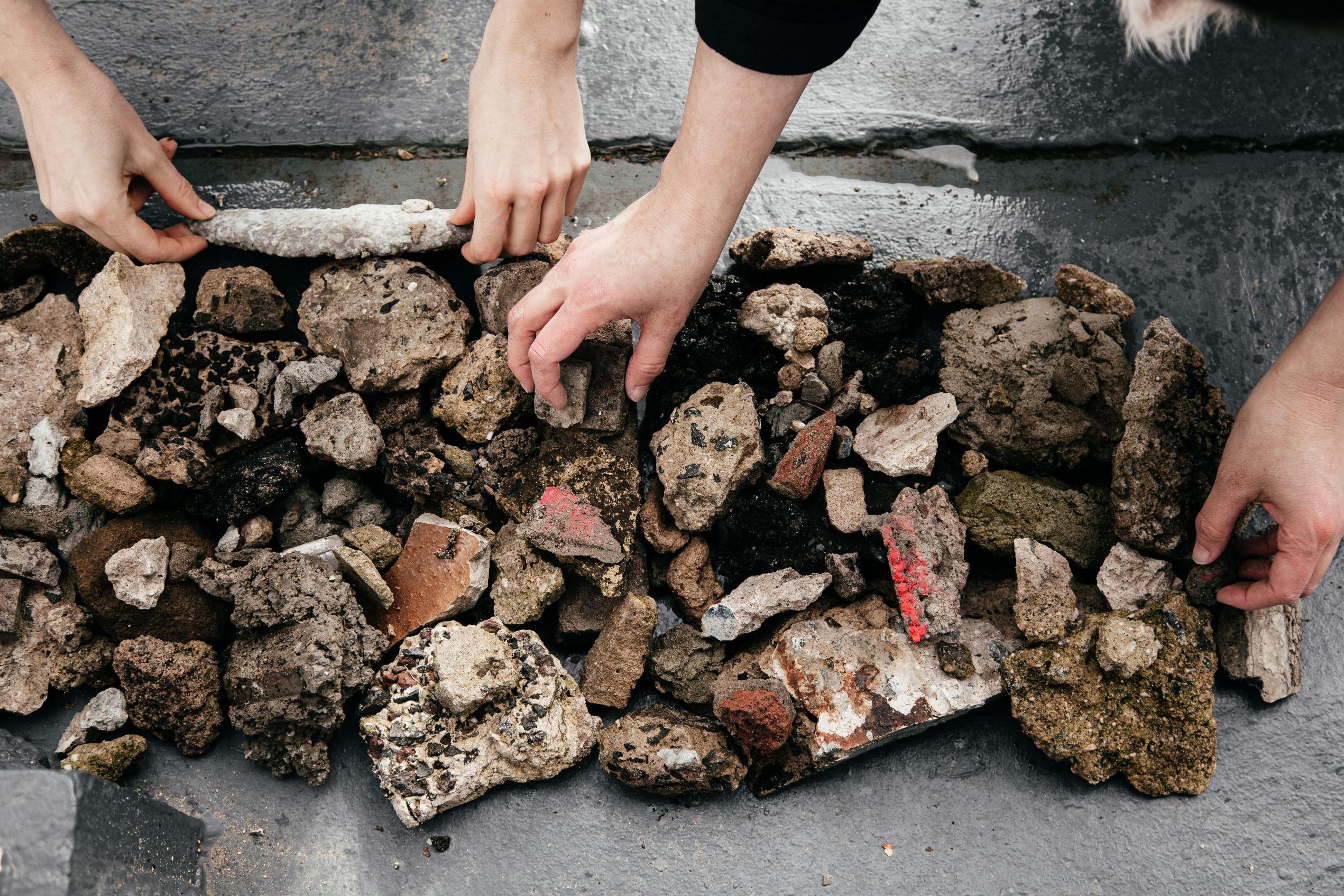 Through everday actions; in the street, on the construction site, on the road, the earth is repeatedly and relentlessly being terraformed, resulting in “new” rocks. The anthropic rock attempts to blend in with naturally formed rocks.